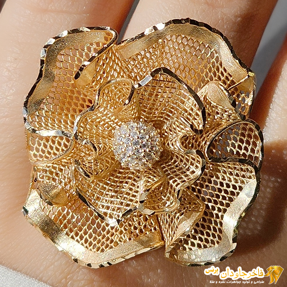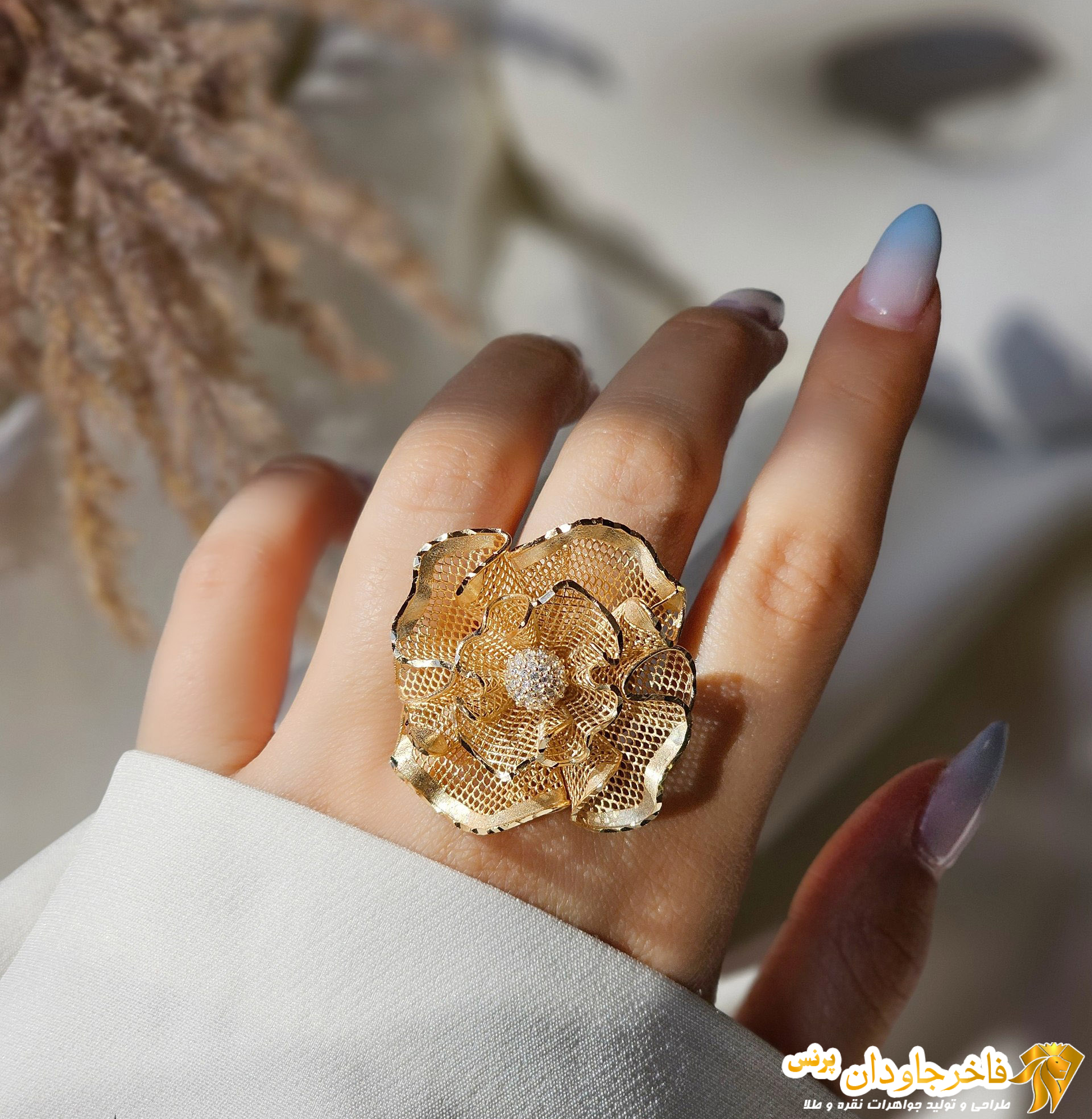 انگشتر فیوژن نقره روکش طلا زرد کد ۱۵۲۳۹ مدل گل