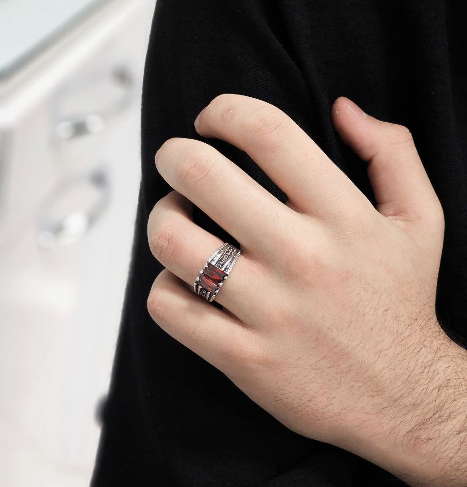 انگشتر مردانه نقره نگین سرخ کد ۱۵۳۶۶