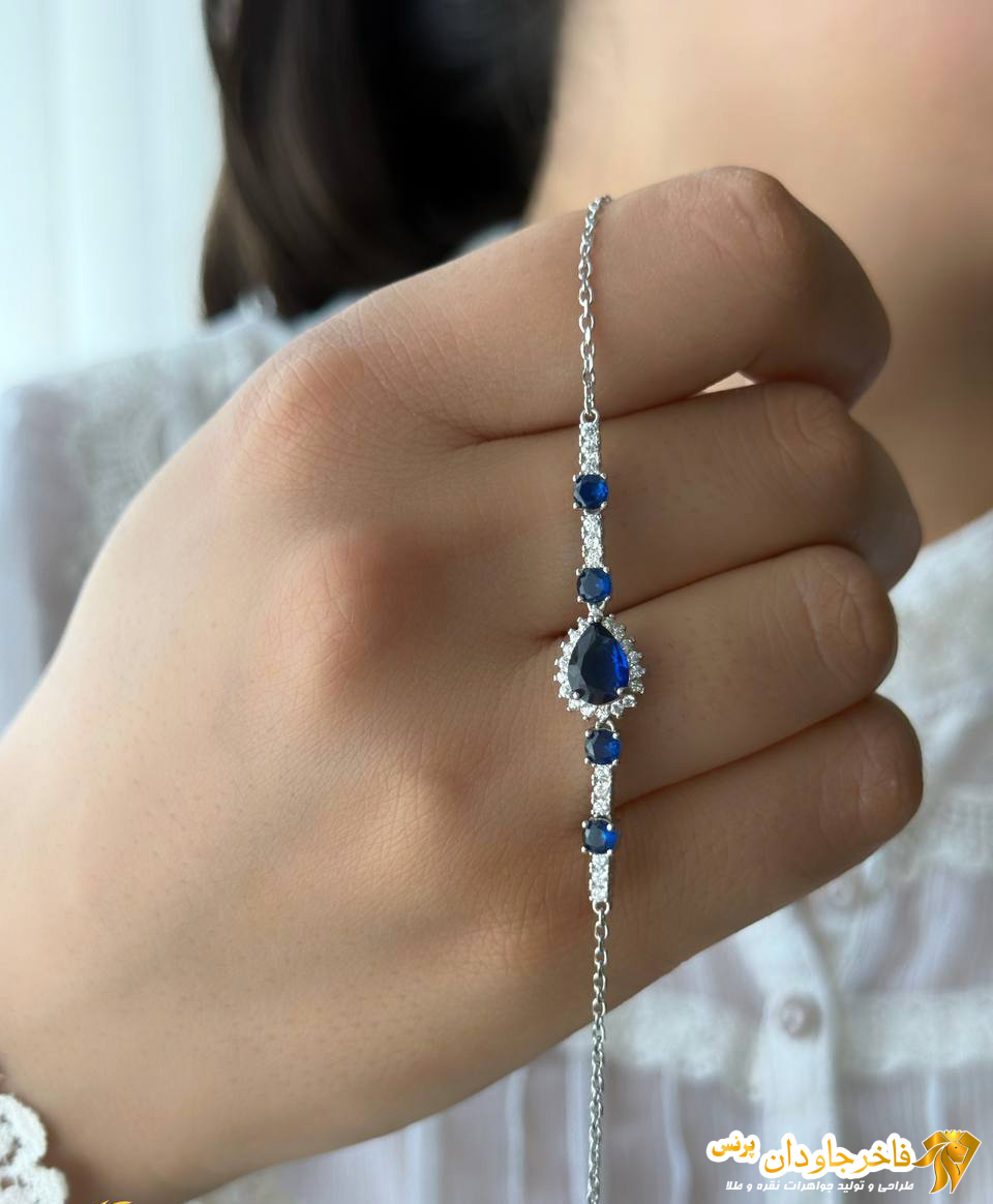 دستبند نقره جواهری نگین آبی کبود کد ۱۵۳۰۳