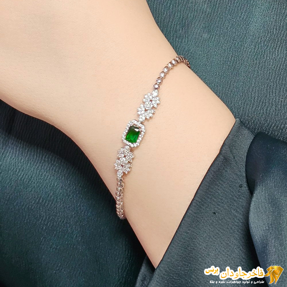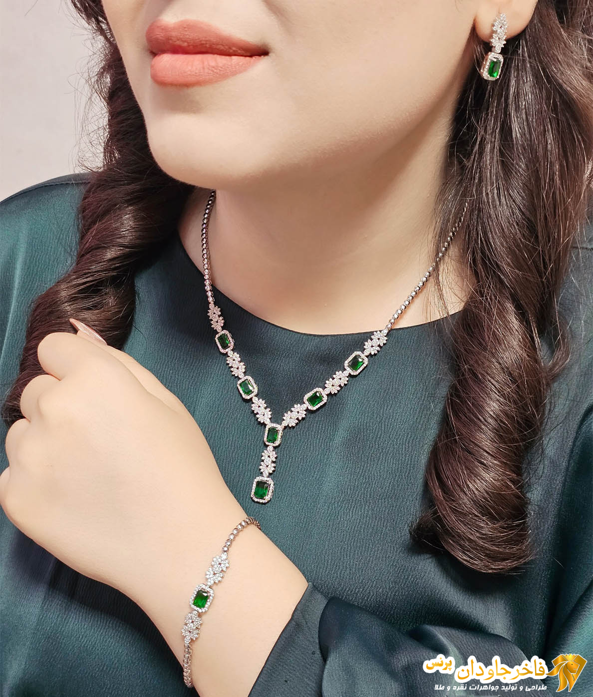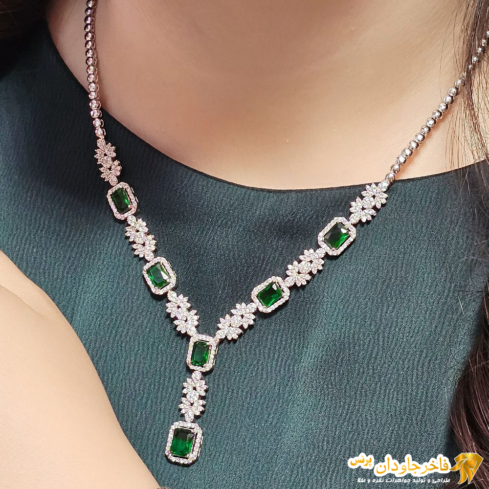 سرویس جواهری نقره نگین سبز زمردی کد 15338 – وزن: 33 گرم جنس: نقره 925 عیار و بالاترین کیفیت آبکاری رودیوم – نگین: جواهری سنگ سبز زمردی