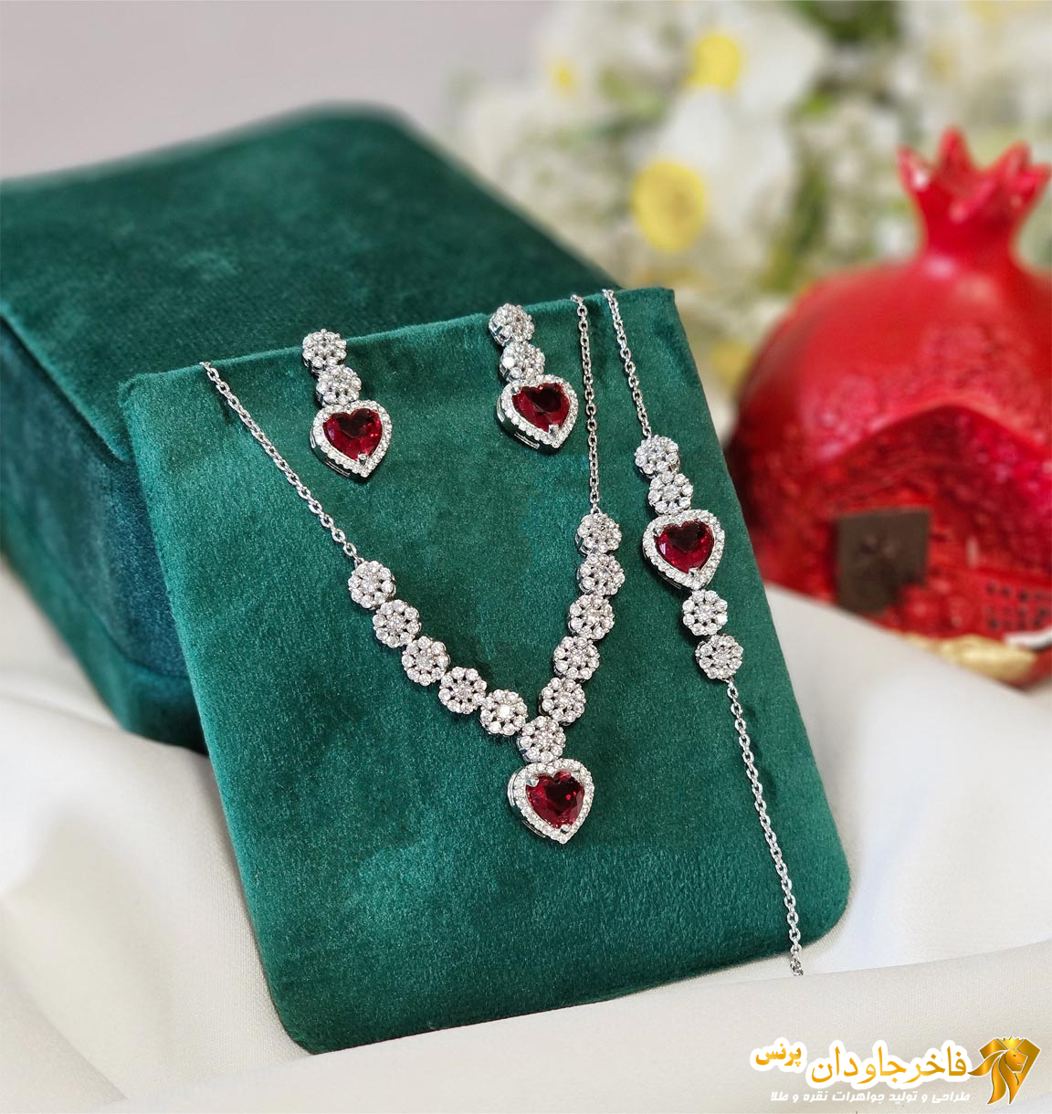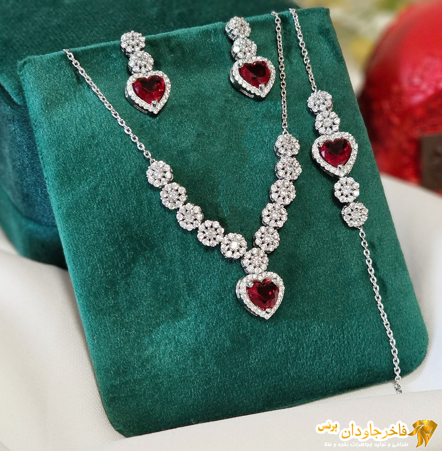 سرویس نقره زنجیری نگین جواهری سرخ یاقوتی کد ۱۵۳۴۶