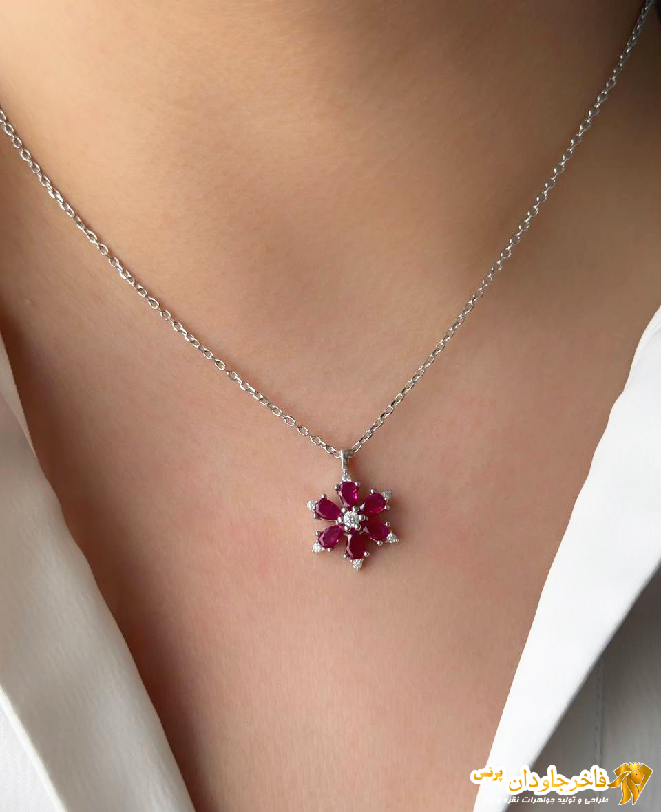 مدال آویز نقره مدل گل نگین سرخ کد ۱۵۲۹۰