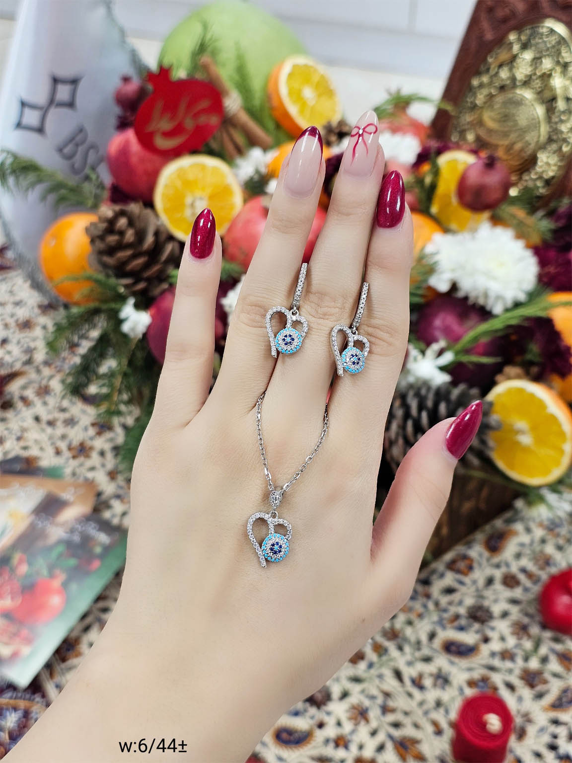 نیمست شامل گردنبند و گوشواره است.