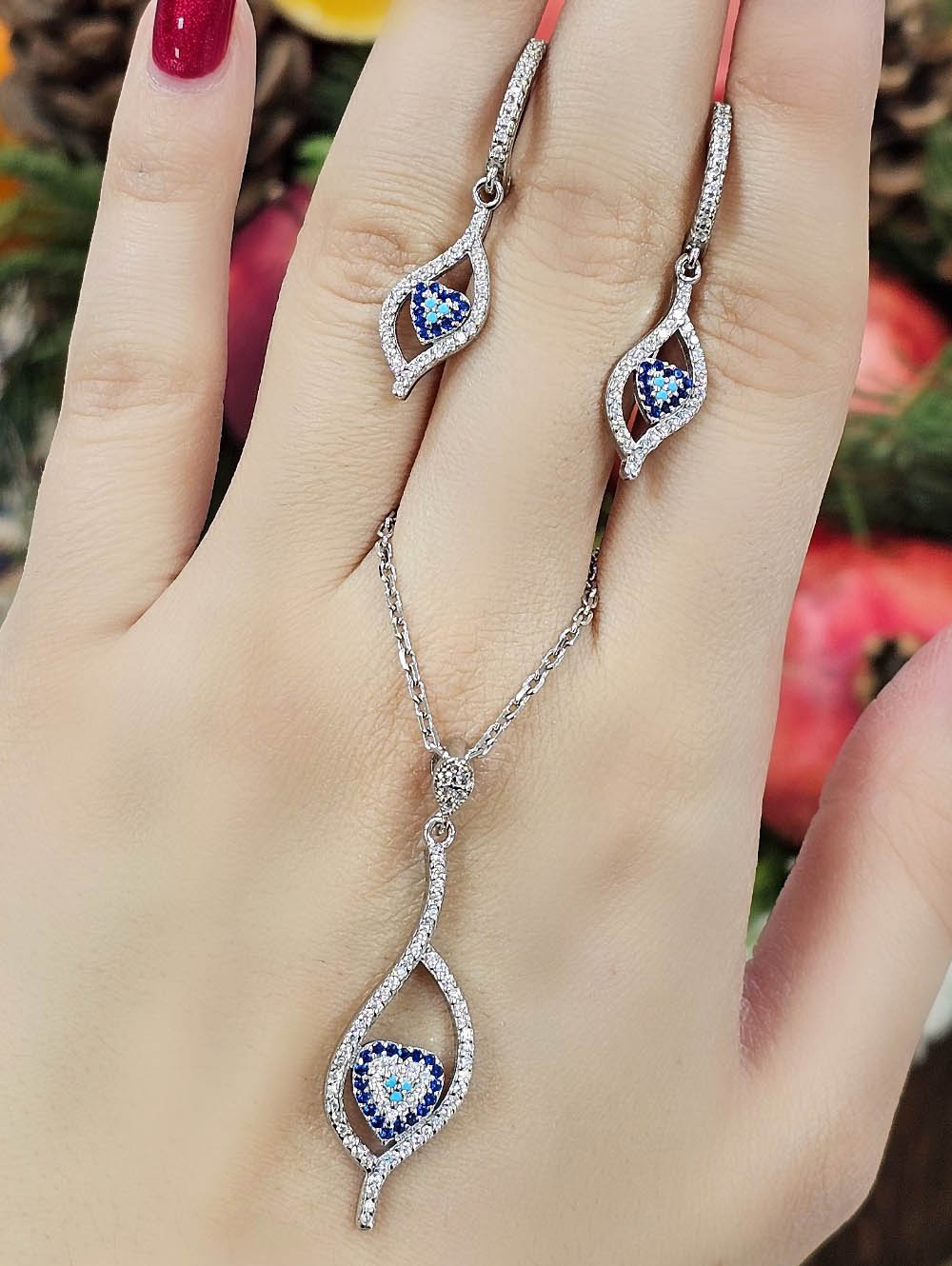 نیم ست نقره نگین آبی جواهری ۱۵۳۵۷