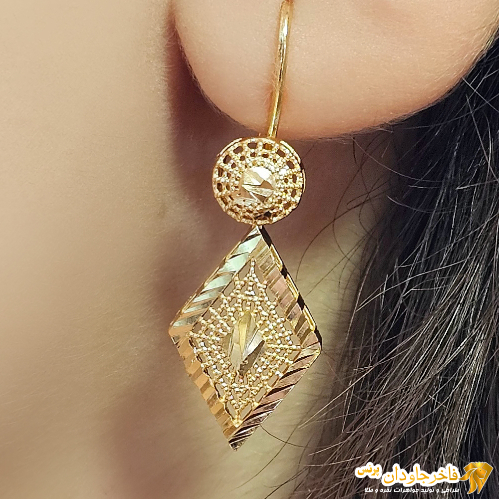 گوشواره نقره روکش طلا زرد مدل لوزی کد ۱۵۲۵۳