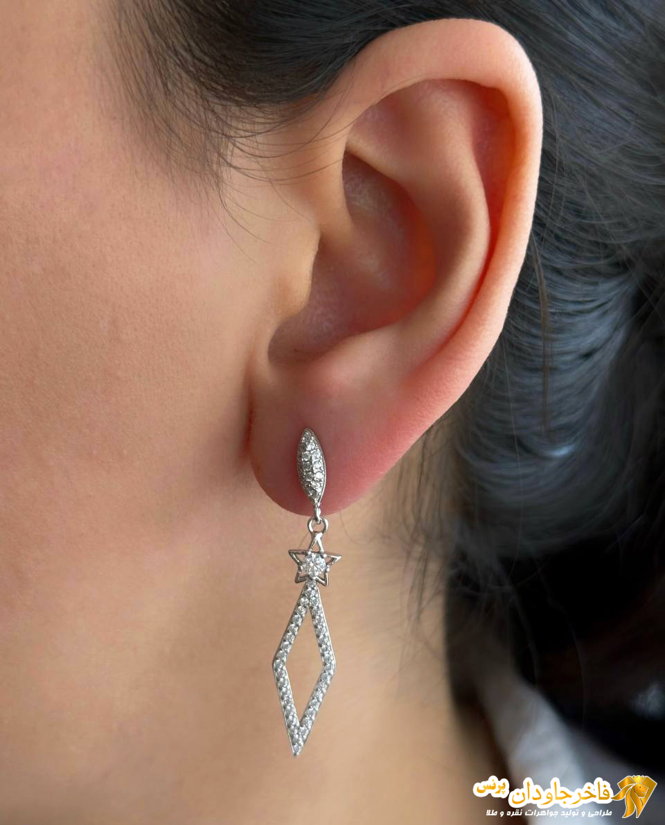 گوشواره نقره مدل لوزی و ستاره کد ۱۵۲۹۶